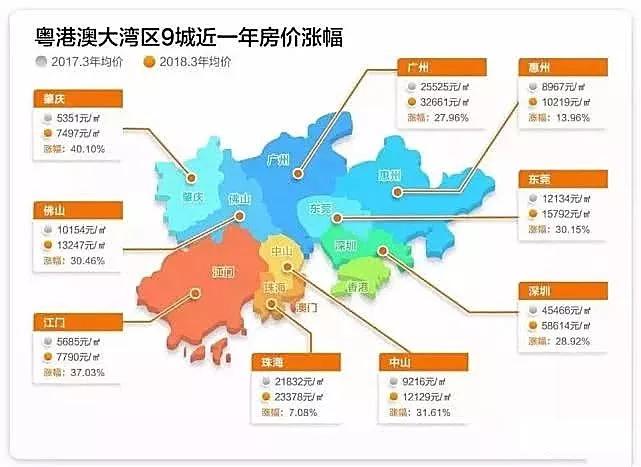 过去一年大湾区的9座城市中,各市的房价都有明显上浮,整体30%左右的涨幅。
