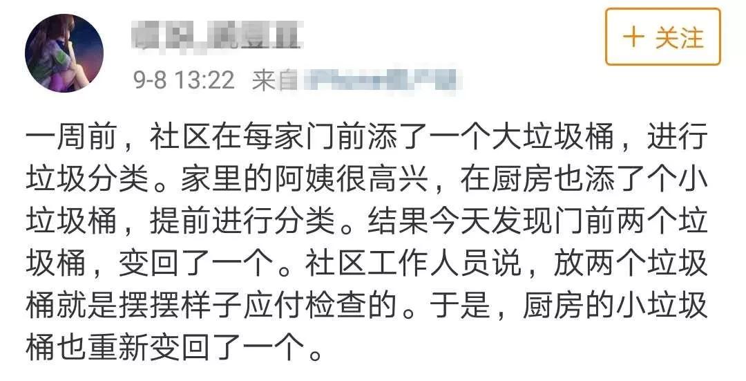 有的时候,好不容易小区居民们想着要做到“垃圾分类”,家里特地买好了不同的小垃圾桶分装垃圾、出门扔的时候也套了不同的袋子,反而是社区工作人员,根本就没把“垃圾分类”当回事儿,只是应付应付检查。