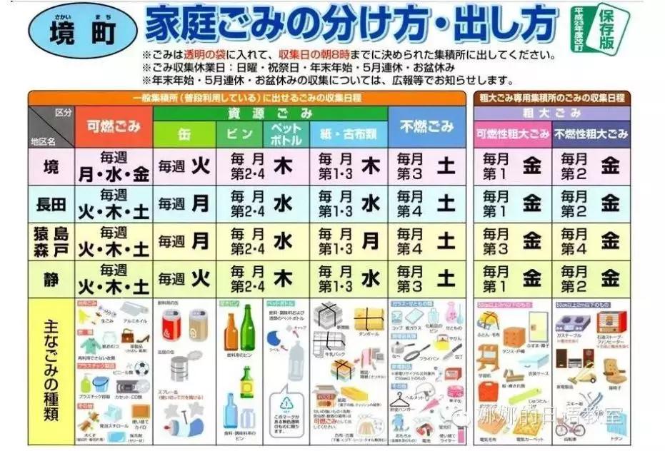 ▲日本某地的垃圾回收时间表