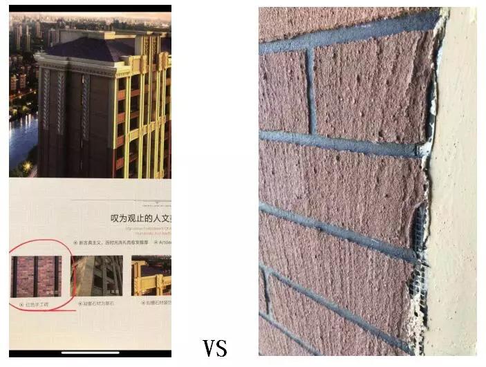 销售时宣传的外立面“红色手工砖”变成了 网格布+涂料