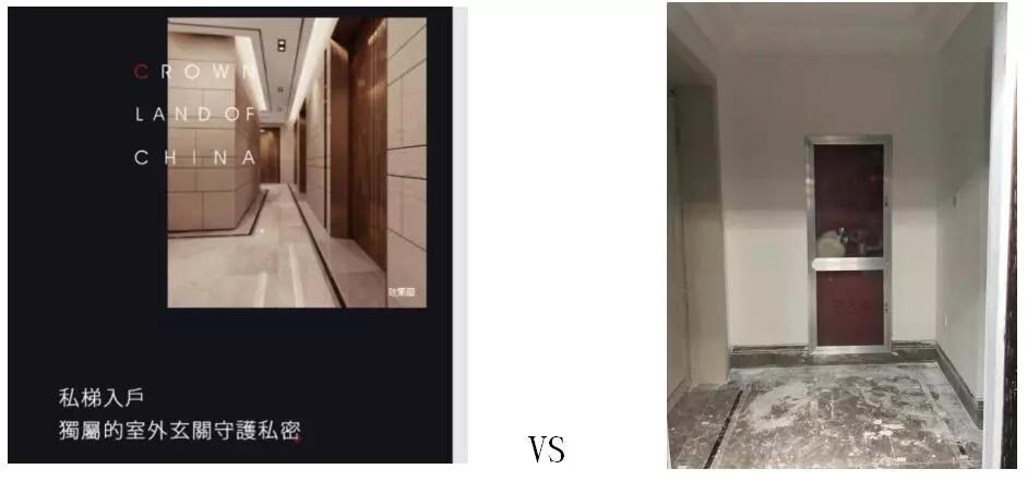 开发商宣传的电梯间与业主看房时对比