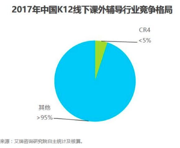 CR4值极低:彼得·蒂尔的著作《从0到1:开启商业与未来的秘密》这样认为:企业竞争的最高形态就是两个字:垄断。而反观在线教育行业,根据艾瑞咨询统计结果来看,截止去年,中国K12线下课外辅导行业的CR4值还不足5%。