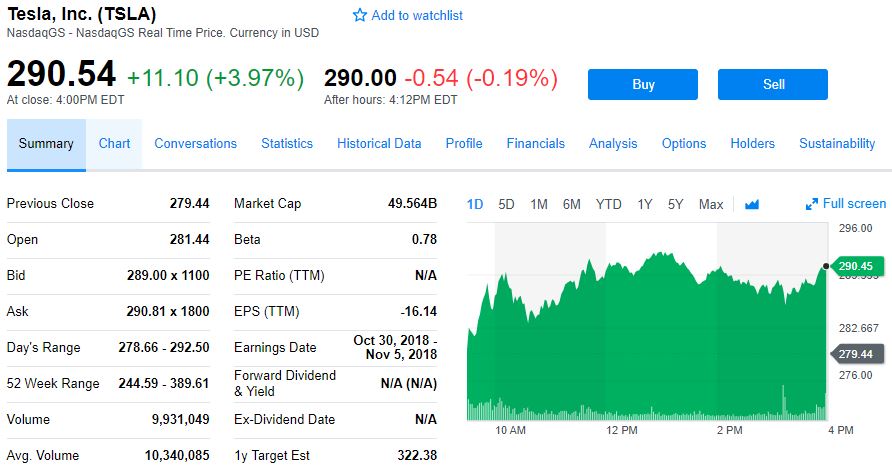 美东下午3点15分消息传出后,特斯拉股价涨幅一度收窄至2%左右,交投接近285美元。美股收盘前特斯拉涨幅重新扩大,最终收涨近4%,重新站上290美元,创9月以来最高。
