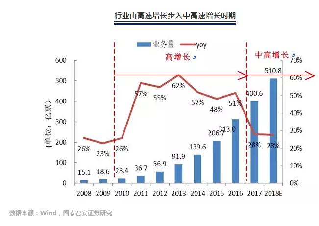 基于对电商快递商业模式与关键成功要素的理解,结合行业增速,我们将行业的竞争演绎划分为两个阶段,比作春秋与战国两个时期。