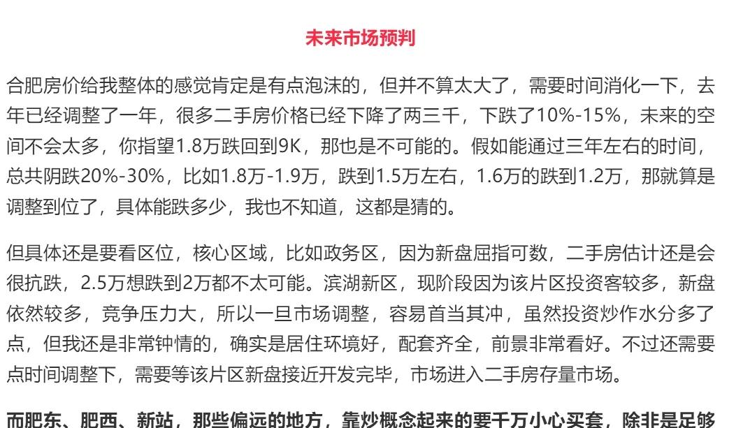 我当时判断合肥有点泡沫,但并不大,未来的下跌空间不会太多:(合肥楼市调研:房价已陷入阴跌中!)