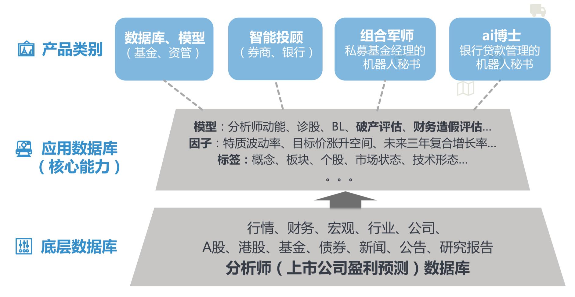 例如针对私募基金中基金经理的“机器人秘书”产品,由于基金经理都管理了众多股票组合,依靠个人来跟踪这么多组合日常变动不太现实,机器人秘书可以实现跟踪股票组合的日常变动,并且通过人工智能和机器学习,来把这些事件对行情的影响量化,用数值来表示利空和利好的状态。