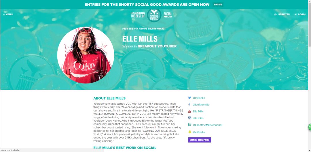 Elle Mills:生活博主,频道为 ElleOfTheMills