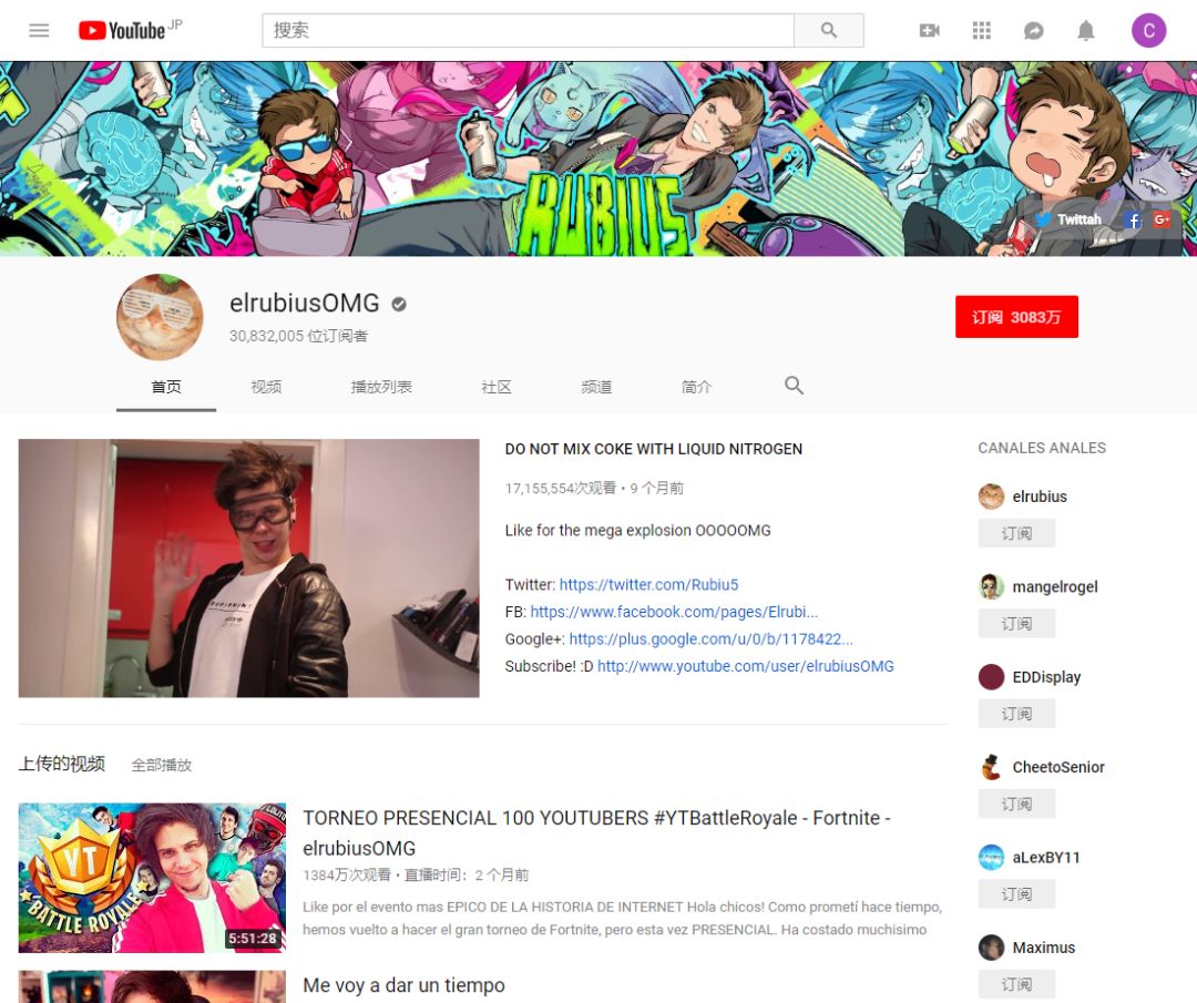 El Rubius:搞笑博主,频道为 elrubiusOMG
