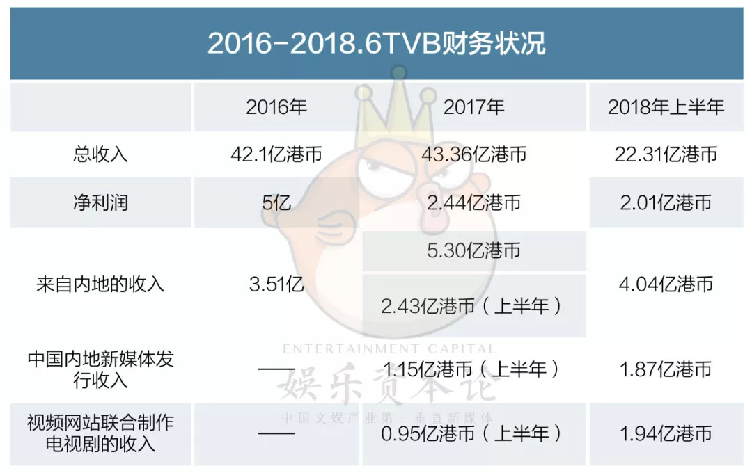 TVB和视频平台的合作确实拉动了它的营收。根据TVB 发布的2018年中期财务报告显示,TVB上半年的收入达22.31亿港币,其中与中国内地的新媒体发行及视频网站联合制作电视剧的收入分别录得63%及104%的升幅。