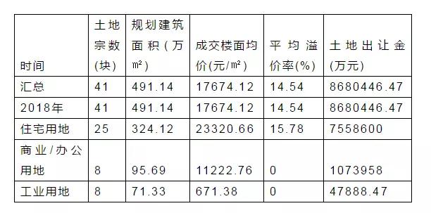2018年截至日前,北京土地市场成交情况