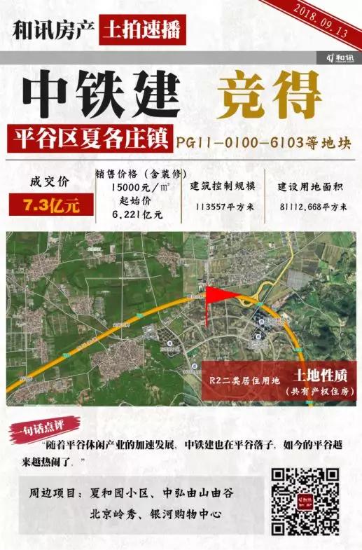 平谷区地块位于平谷区夏各庄镇,为R2二类居住用地,土地面积8.11万平方米,建筑控制规模11.36万平方米,出让起始价为6.22亿元。