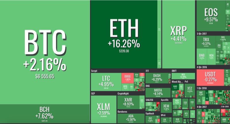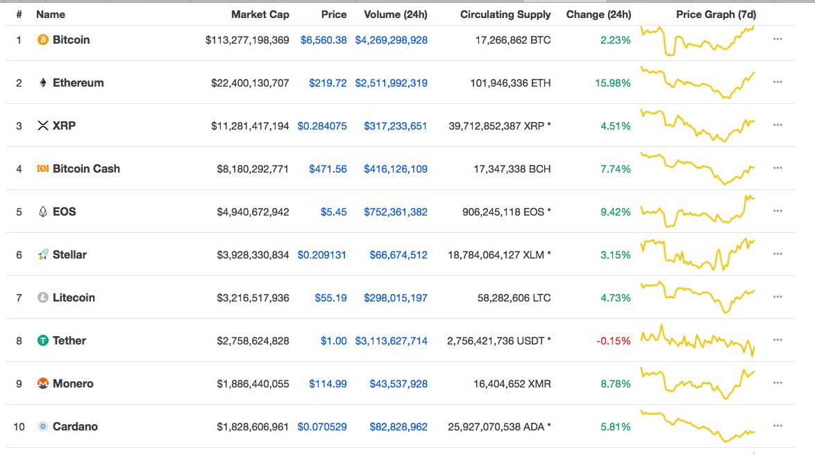 Michael Novogratz 的推论也并非毫无根据。昨日( 9 月 13 日)以来,数字货币市场有小幅回温。截至发稿前,coinmarketcap 数据显示,除 tether 外的前十名的币种,均呈现上升趋势。