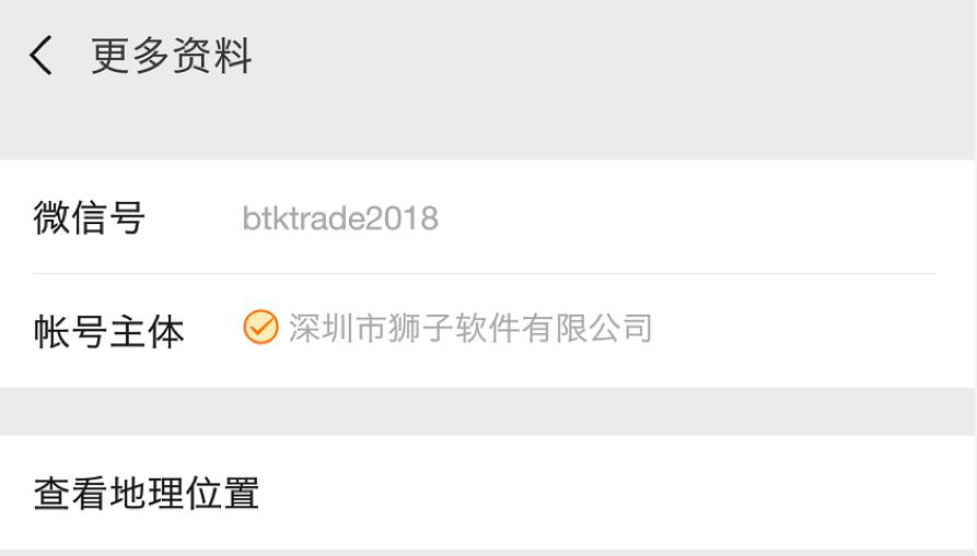 另一可疑信息是,之前据大象区块链报道,BTK 交易所经过微信官方认证的服务号“比特王(微信号 bittrade2018)”,其认证公司是深圳市狮子软件有限公司。因此该报道认定号称 the Kingdom of Cambodia 第一交易所的 BTK 交易所,其主体实际是深圳市狮子软件有限公司。
