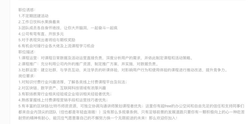 另外这家公司运营总监的岗位描述是,课程运营、课程推广、社群推广等。最好有职场教育或企业培训的经验。具体如下: