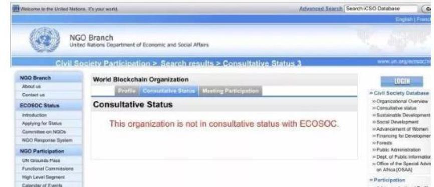 且其背书机构 WBO 在联合国 NGO 组织的相关页面显示,“This organization is not in consultative status with ECOSOC”,这意味着 WBO 与联合国并无任何隶属关系。即 WBO 为“野鸡协会”