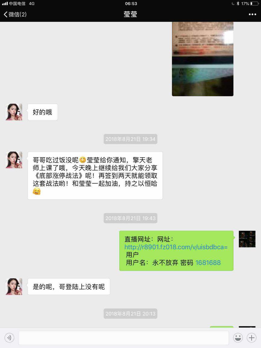 有人表示,他们(讲师)给人一种具有助人为乐的胸襟和具备很好的股票技术的形象。“现场选股做股,胜率很高,” 所以就会去相信他。并且向他们咨询注册、登录等操作过程中遇到的任何技术问题和心理问题,他们也会热心地帮忙解答。
