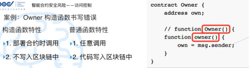 刚才讲到了,合约本身是有一个外部账户和合约账户的区分,所以智能合约风险第一个也是我们认为比较常见的问题,叫做访问控制的问题。