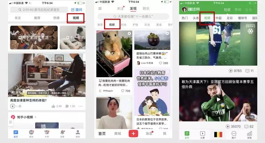 短视频产品不断收割流量的同时,各个垂直领域内的产品纷纷推出自己的短视频模块,例如体育类产品虎扑和懂球帝、美妆类“小红书”,以及知识社区知乎。