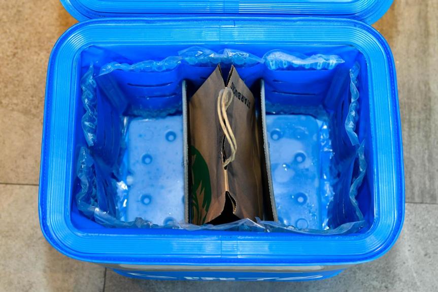 饿了么为星巴克打造的全新冰包,冷热分离,防止咖啡饮料撒漏