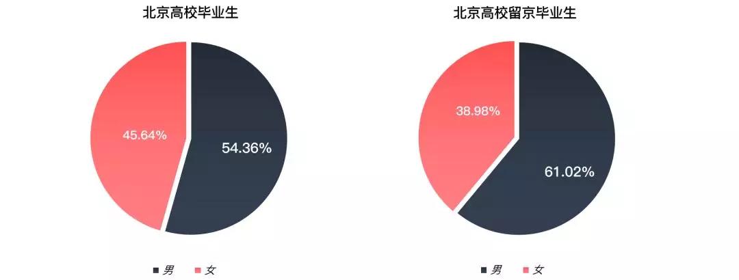 北京高校毕业生和留京毕业生性别占比对比
