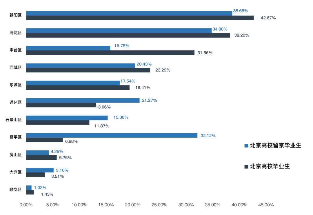 6月调查数据显示,北京高校毕业生最关注的区域TOP5分别是朝阳、海淀、丰台、西城和东城,这些区域均属于内城区,产业扎堆、租金不菲。毕业生如果不靠家庭的支持,仅凭自己初入职场的薪水租房,很难落脚。