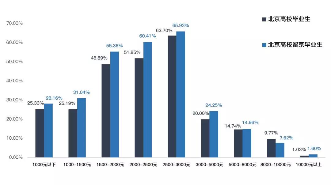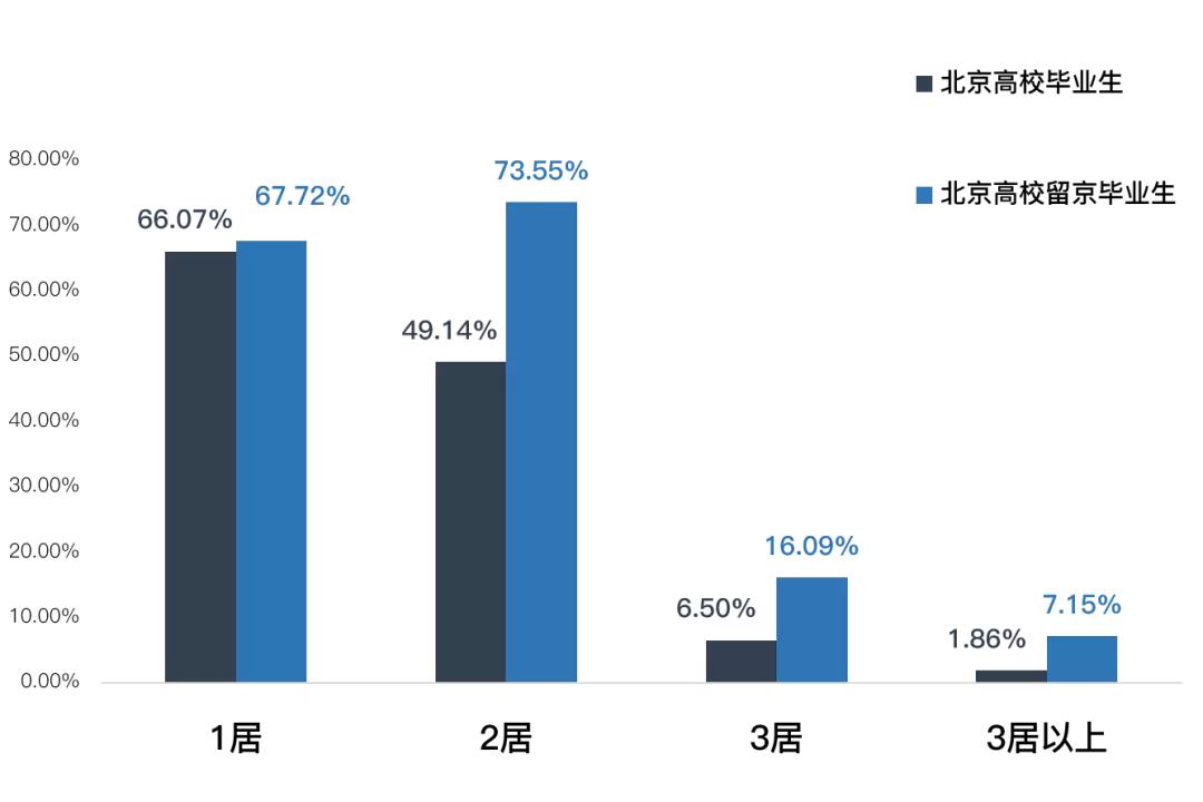 数据显示,北京高校应届毕业生中,有86.47%选择了留京,13.53%的人选择了离开。