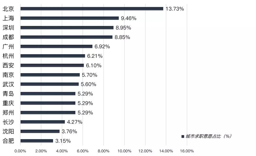 2018年高校毕业生求职热门城市TOP15