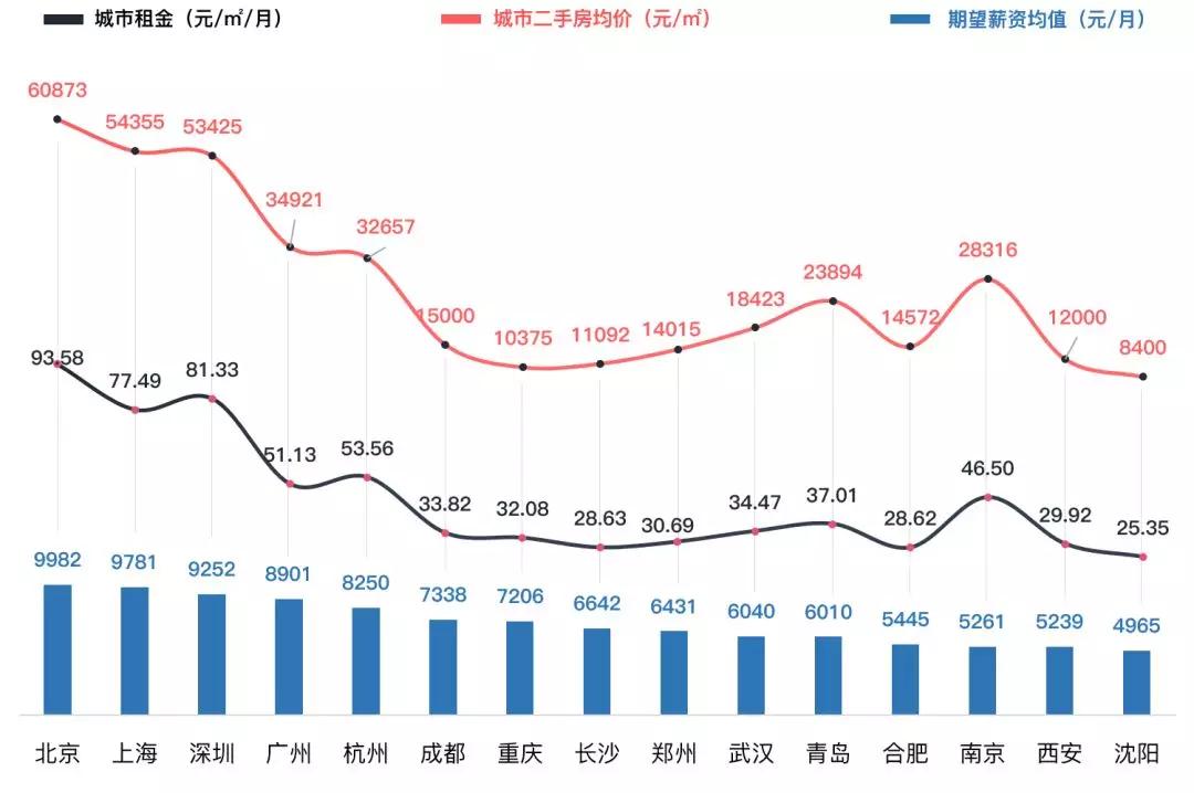 2018年高校毕业生期望薪资均值及城市租金和二手房价