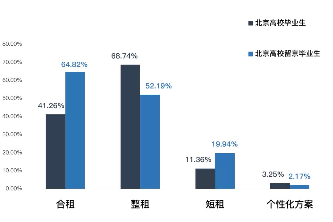 从需求分布来看,北京高校毕业生的租房需求,集中在中关村、五道口、西三环、东五环一带,这里也是以北大、清华、北航、中传等为代表的全国知名学府扎堆的地方。