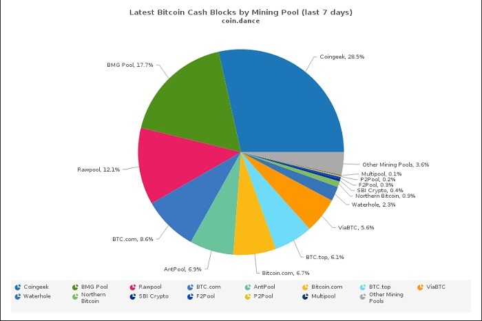 在过去的七天里,BMG Pool(Nchain)和Coingeek控制着全球46.2%的比特币现金挖矿算力。