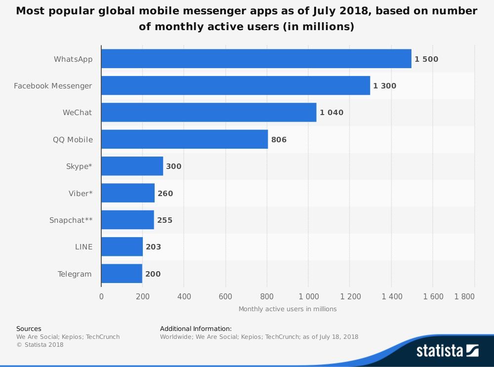 2018年 7 月全球MAU 排名前十的移动通讯App