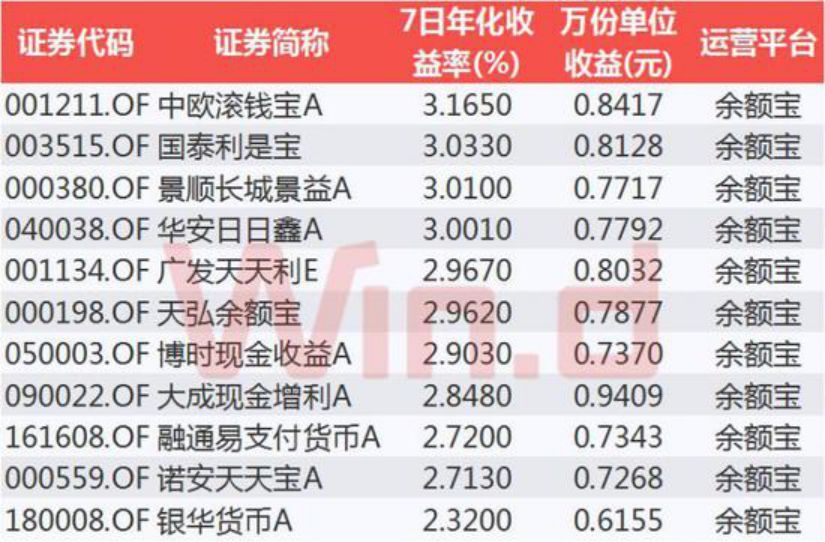 余额宝平均收益连续跌破3%,10万本金一天只赚不到8块
