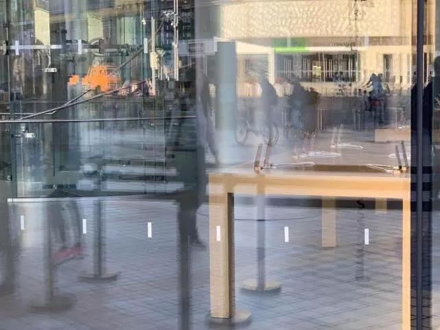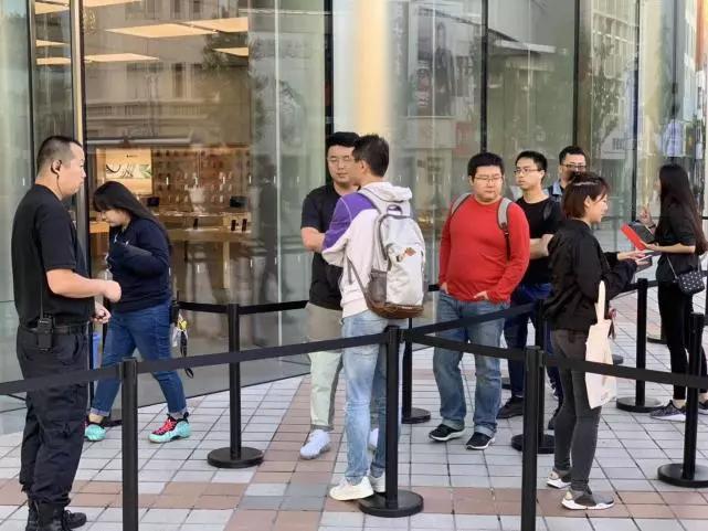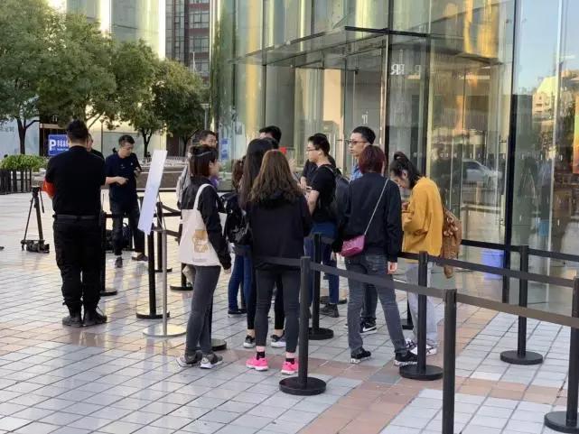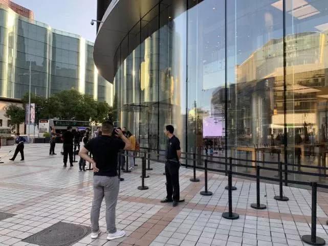 排队隔离线的入口也离Apple Store的门口近了不少。