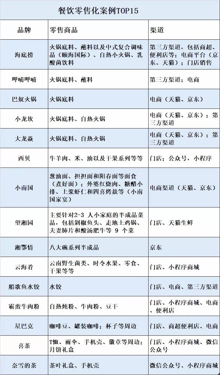 下面我们梳理了在餐饮零售化领域做得比较好的品牌,供大家参考(以下排名不分先后)