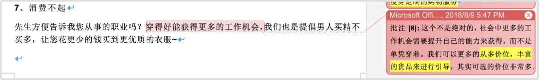基于「真实」的品牌形容词,市场团队发现客服在跟用户沟通的关于产品价格问题时的话术——「穿得好能获得更多的工作机会」是明显不符合「品牌手册」的标准的,因此,市场团队建议从产品本身的优势给用户做引导,真实展现产品的卖点,去掉「穿得好能获得更多工作机会」这种浮夸的表达。