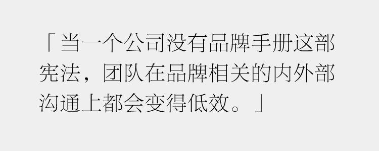 所以,当一个公司没有品牌手册这部宪法,团队在品牌相关的内外部沟通上都会变得低效。