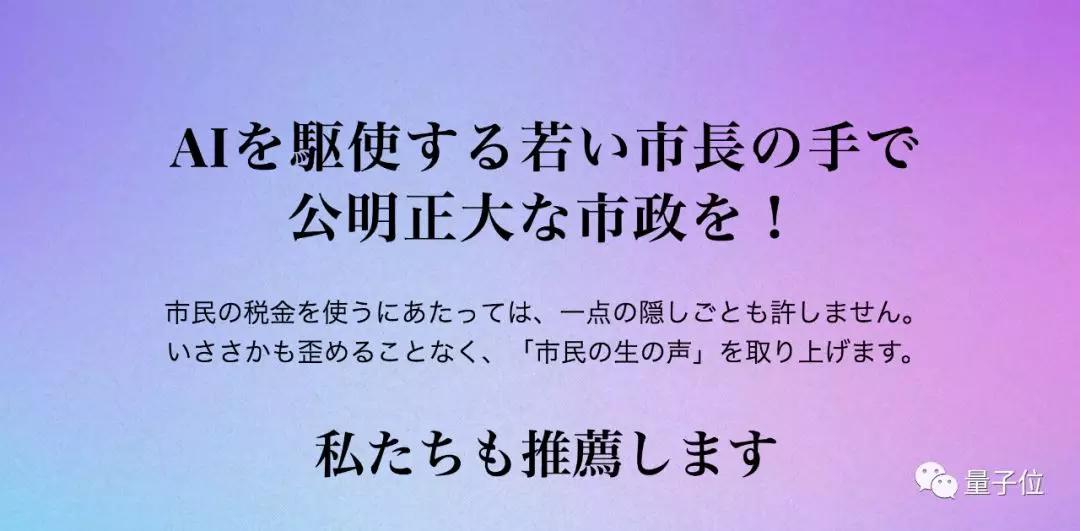 在AI市长的网站上有一张宣传页,上面用大字号的日文写着: