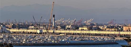 图:猎鹰9号B1048于7月27日抵达洛杉矶港,在泊位上又呆了一周才被运往别处