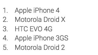 ▲ NPD:2010 年全美最受欢迎智能手机列表,图片来自 CISION