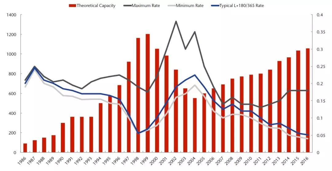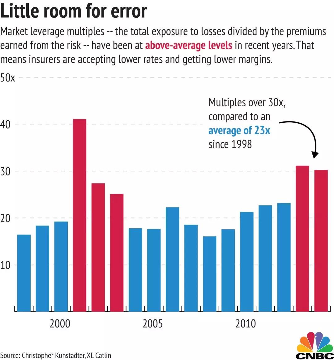 而在此之后,保险业又迎来了Soft Market,近10多年来承保能力稳定增长,发射保险费率也几乎降到了历史最低水平。