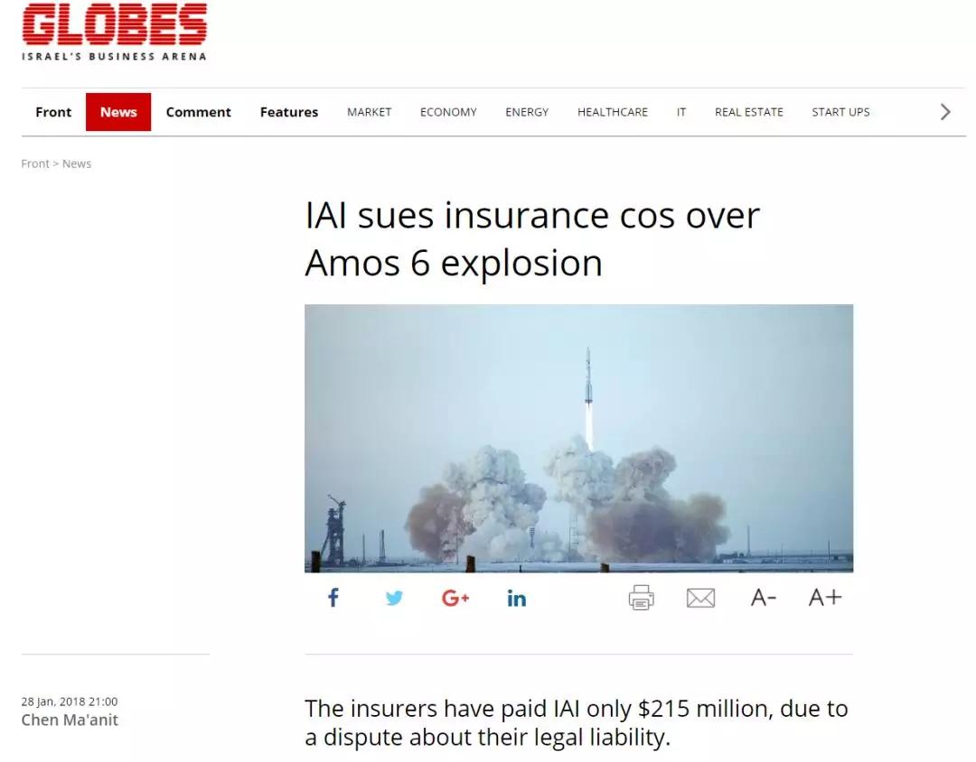 我们熟悉的SpaceX曾经在2016年的9月进行静态点火测试时发生爆炸,将准备发射的AMOS-6摧毁,但从目前此事的发展来看,尽管保险公司已经向IAI(AMOS-6卫星制造商)赔偿了2.15亿美元,但IAI依然在今年1月将保险公司、保险经纪公司等告上法庭,认为赔偿金额还有3亿以色列新谢克尔(约8300万美元)应赔付。从这一点我们也可以看出,尽管“发射前保险”这一险种在卫星的商业保险中历史最悠久,但依然有分歧。