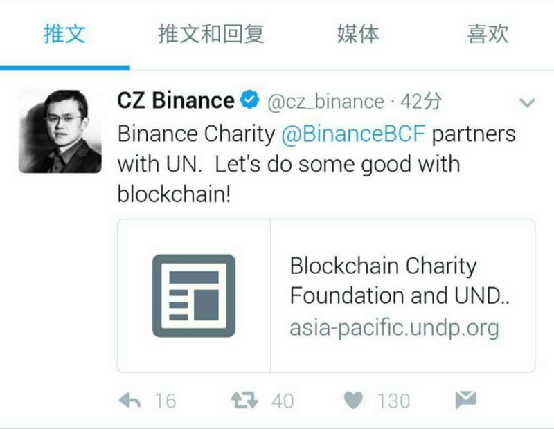 币安出资区块链慈善基金会,与联合国开发计划署建立伙伴关系
