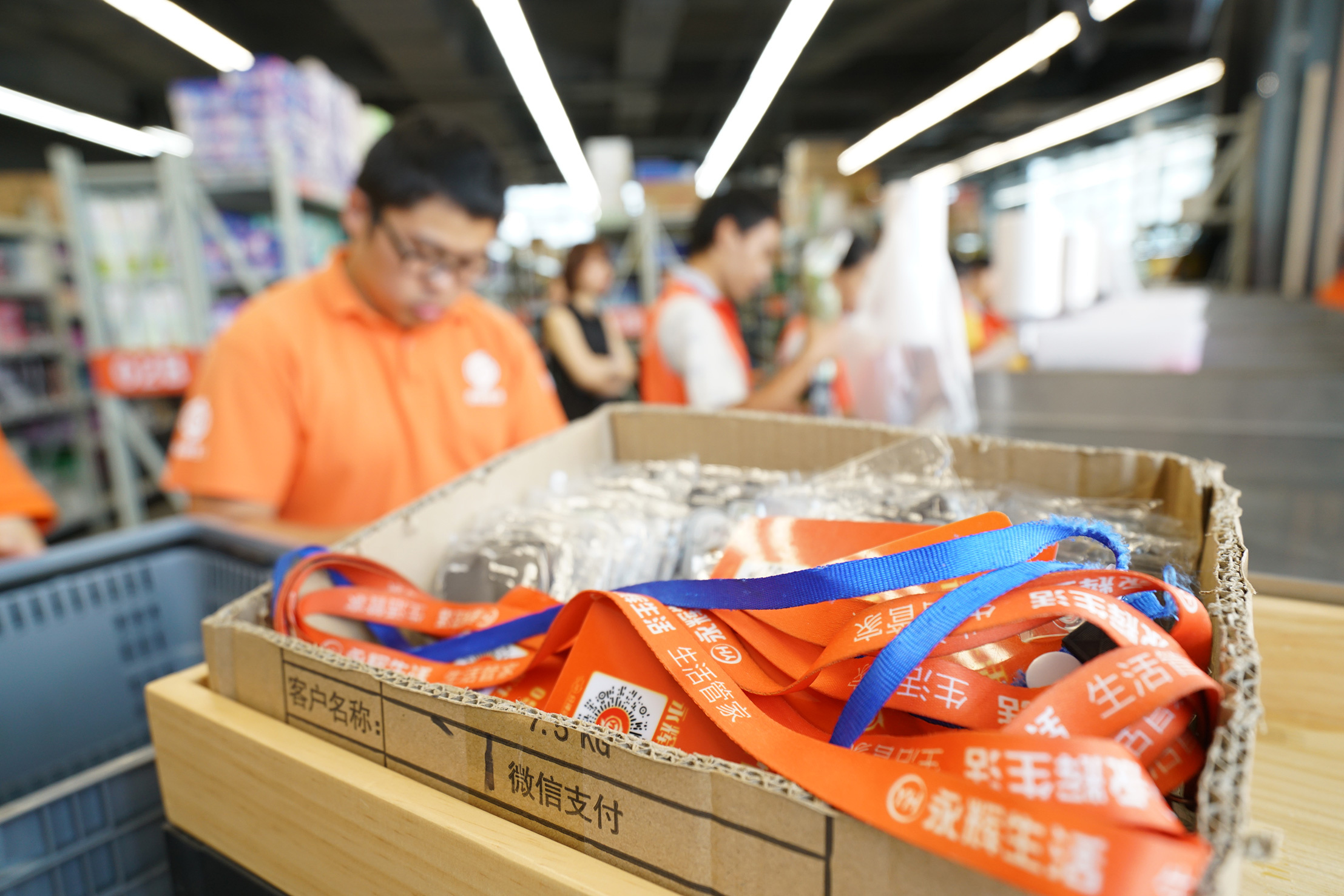 永辉生活到家业务是今年5月上线的新业务,它是利用300到600平米的“卫星仓”,辐射周边3公里、半小时达的到家配送服务,类似一些生鲜电商采取的前置仓模式。对于永辉来说,它比门店更轻、复制更快,能迅速覆盖门店目前到达不了的区域,同时在成本上与店仓一体化模式相当。卫星仓目前仍与永辉门店内的到家服务并行,消费者可以选择距离最近的店或者仓进行配送。
