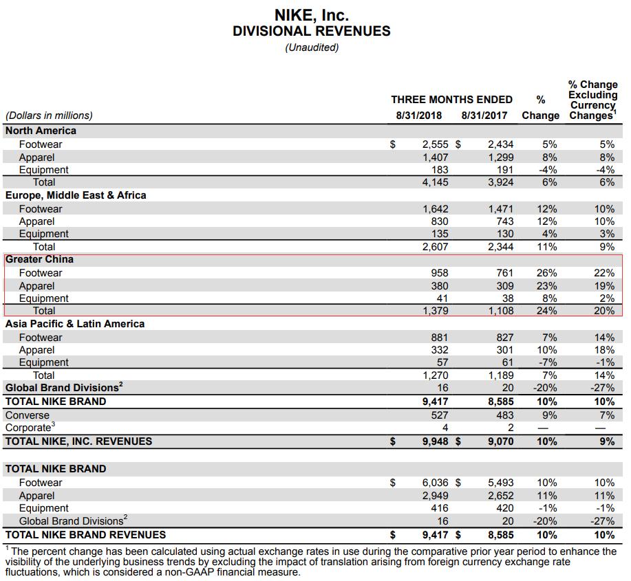 不过,尽管营收不及预期且增速放缓,但耐克依然在大中华区实现了连续第17个季度两位数高增长。