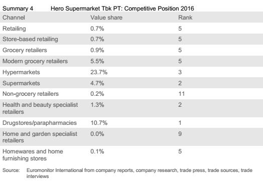 Hero Supermarket Tbk PT:2016年竞争力排名
