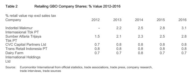2016对印度尼西亚10大零售商来说是光明的一年,因为他们在2015注册了更高的综合价值。这主要得益于他们的销售网络迅速扩张到爪哇的小城市以及爪哇以外的主要城市。最令人印象深刻的扩张是在便利店发布的,尤其是由于三家主要零售商Indomarco Prismatama PT,Sumber Alfaria Trijaya Tbk PT和Midi Utama Indonesia Tbk PT使用了特许经营协议。全国十大零售商的强劲增长也与这些领先零售商所采取的策略有关,例如促进自有品牌产品的价值销售以及提供店内促销。