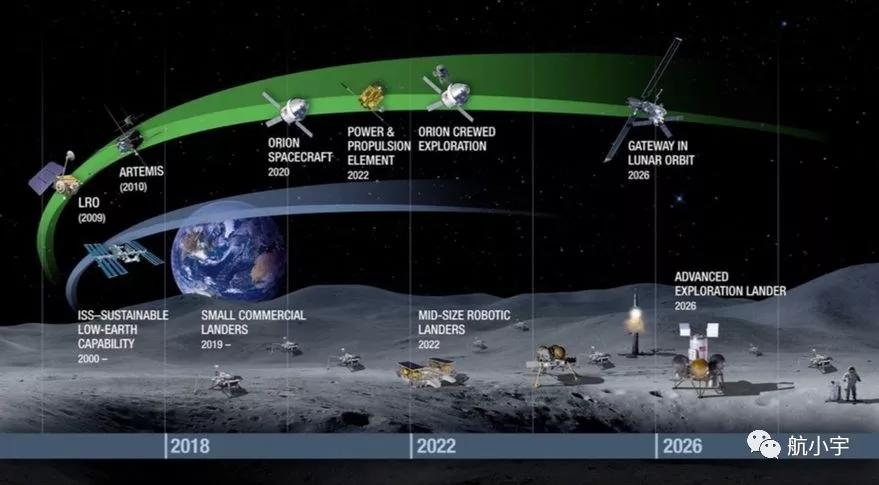 NASA新报告中的这幅图描绘了月球未来活动安排。该局近来已多次在介绍其探月工作时使用了这幅图