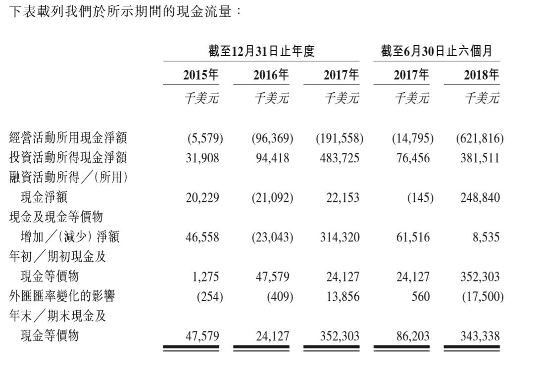即便根据上面的一点,比特大陆今年上半年的投资所得现金减去经营所得现金,却是负数,这个数字在此前三年一直是正。今年之所以还有正向的现金流,主要是依靠2.5亿美元的融资活动所得现金,以及年初的大量现金及现金等价物。