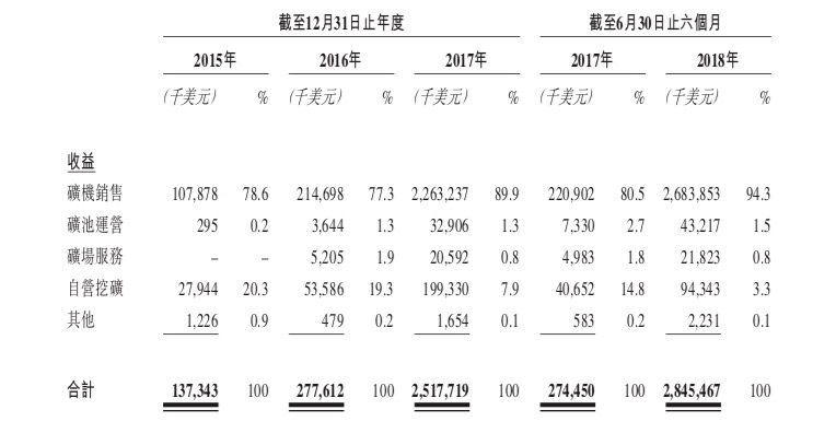 比特大陆各分部业务中,矿机销售的占比在提升,自营挖矿的收入和占比在逐年降低。