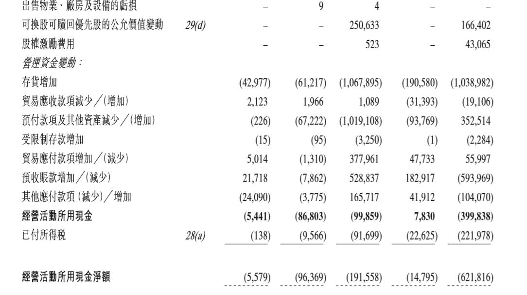 进一步看细致的现金流表,这跟今年上半年存货大幅增加(10亿美元)、预收账款大幅减少(5940万美元)有关。